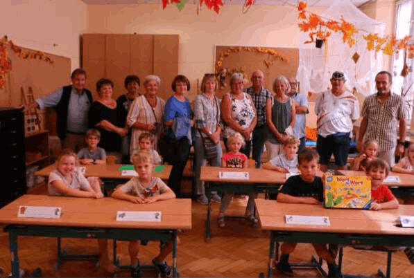 Direktorin Christiane Alker und das Lehrerkollegium bereiteten den Gästen einen warmherzigen Empfang. Den Auftakt bildete ein Besuch in der ersten Klasse, wo die Schulanfänger die Jubilare mit einer heiteren Darbietung überraschten. Als Erinnerung übergaben die Gäste der Klassenlehrerin ein Lernspiel für die Kinder.