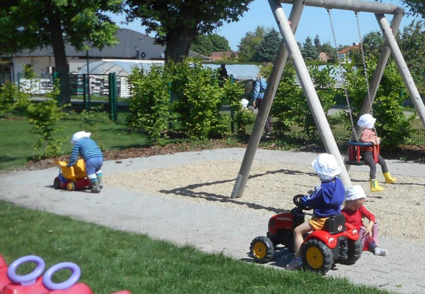 Im April fand eine Umgestaltung unseres Gartenbereiches statt. Wir haben eine Rennstrecke bekommen. Diese bereitet den Kindern viel Spaß und reude.