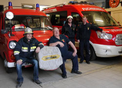 2012 | Neues Fuerwehrfahrzeug: Das Fahrzeug ist ausgestattet mit einem Wassertank mit Schnellangriffseinrichtung, Atemschutzausrüstung, Lichtmast und Umfeldbeleuchtung, Einsatzleitstelle, Unterwasserpumpe, eingebautem Stromaggregat und Spezialwerkzeug für technische Einsätze und das bei einem Gesamtgewicht von 5.300 kg.