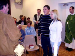 Die jungen Mieter erhielten im Zuge der Schlüsselübergabe je ein schönes Keramik-Kreuz für die neue Wohnung als Geschenk der Gemeinde.