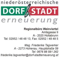 Die Meldung des Vereins an die BH und an das Büro der NÖ Dorf- und Stadterneuerung in Hollabrunn wird in Kürze erfolgen, weiters ist für die Aufnahme in die Landesaktion noch der Grundsatzbeschluss des Gemeinderates über das Leitbild ebenfalls nach Hollabrunn zu übermitteln.