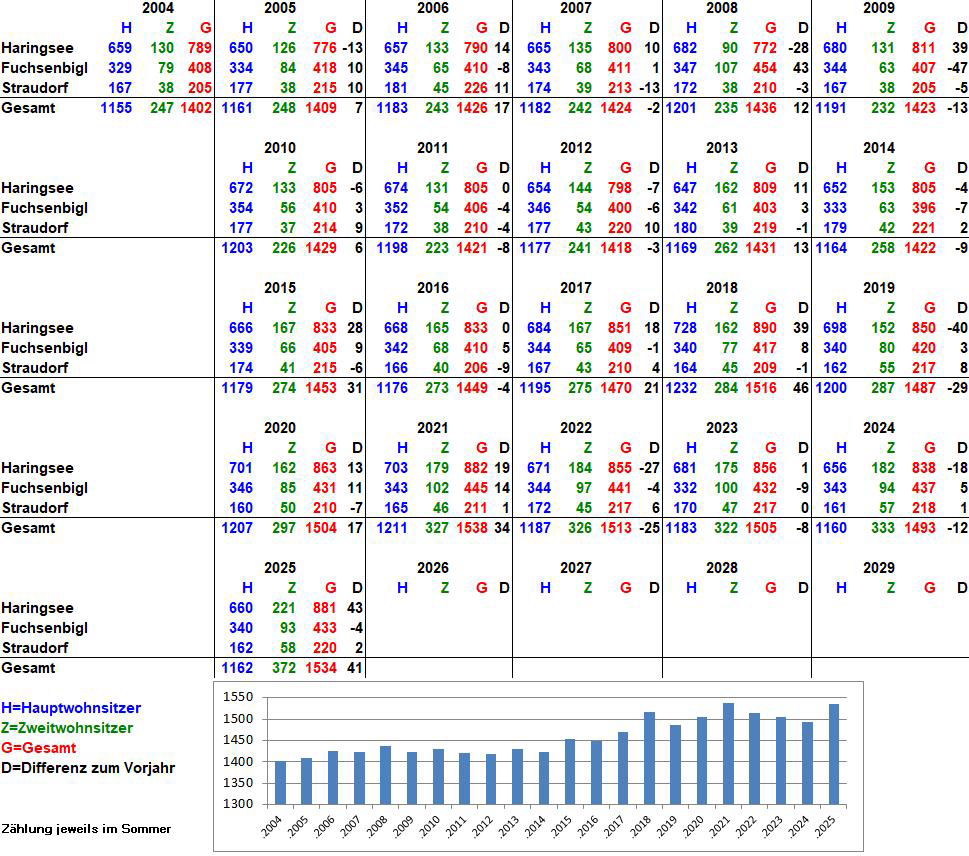 Einwohnerstatistik Haringsee, Fuchsenbigl, Straudorf