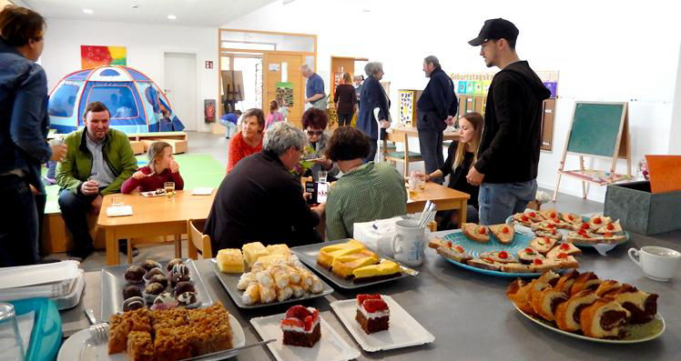 Die Eltern versorgten die Kinder und unsere Gäste mit einem köstlichen Buffet. Der Höhepunkt war eine Theatervorstellung der Kinder. Sie boten das Märchen von den Bremer Stadtmusikanten dar. Dabei konnten sich die Kinder als selbstbewusste Schauspielerinnen und Schauspieler präsentieren, die sehr kreativ das Bühnenbild gestaltet haben.