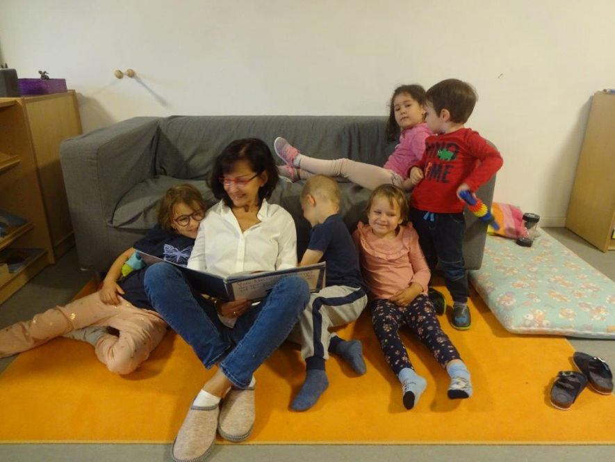 Wir freuen uns auch immer wieder, wenn die eine oder andere Oma zu uns in den Kindergarten zum Vorlesen kommt. Die Kinder mögen dieses Erlebnis sehr, vor allem wenn eine Oma auch einmal englische Bilderbücher vorliest.