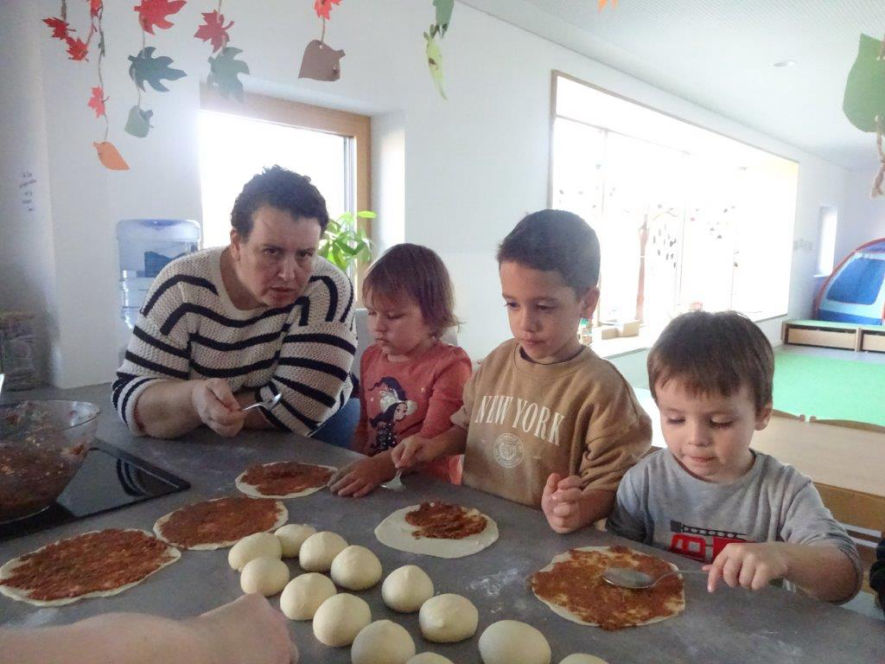 Der Höhepunkt des Vormittages war der Besuch von zwei Müttern, die mit den Kindern ein türkisches Gericht mit dem Namen Lahmacun zubereitet haben. Es hat sehr gut geschmeckt.