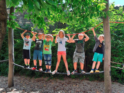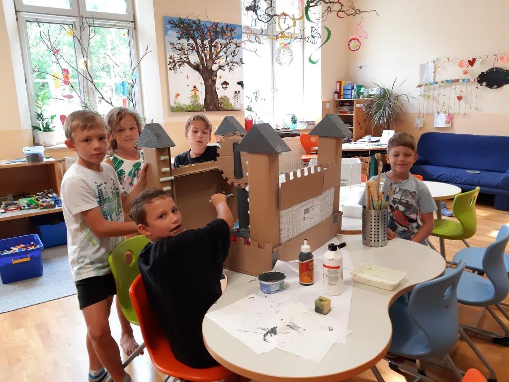 Mit viel Hingabe und Liebe zum Detail sind sie auch in den letzten Tagen des Sommers noch mit viel Eifer dabei eine Ritterburg zu bauen!