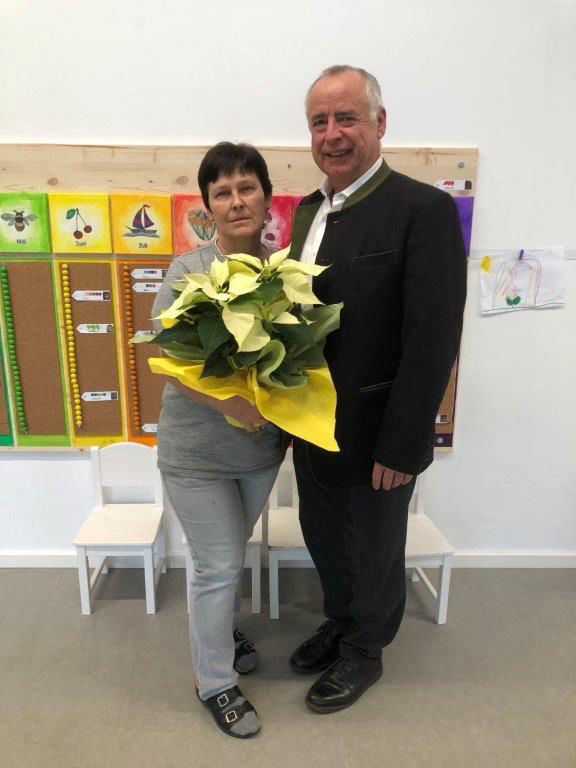 Bei der Verabschiedung bedankt sich Bgm. Roman Sigmund bei Frau Steininger für die stets hervorragende und auch verlässliche Arbeitsleistung und überreicht einen Blumenstrauß sowie ein Abschiedsgeschenk der Kollegenschaft.