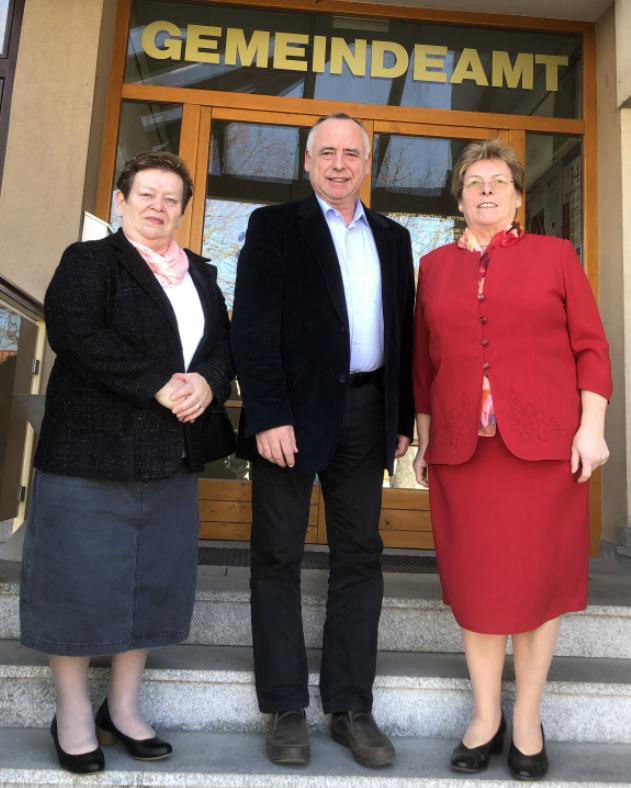 Fotot v.l.n.r. Anna Skladany (Ortsvorsteherin Fuchsenbigl), Bgm. Roman Sigmund, Helene Nikowitsch (neue Ortsvorsteherin Straudorf)