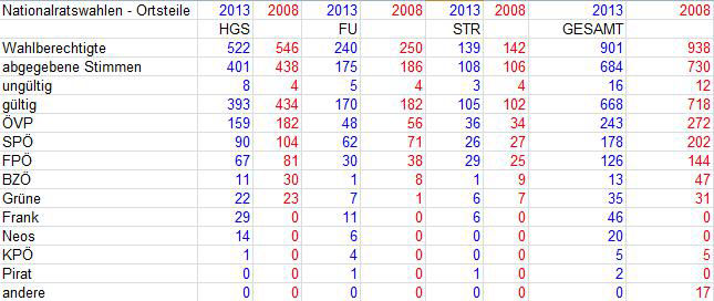 Nationalratswahl 2013 am 29.9.2013 - Ortsteile