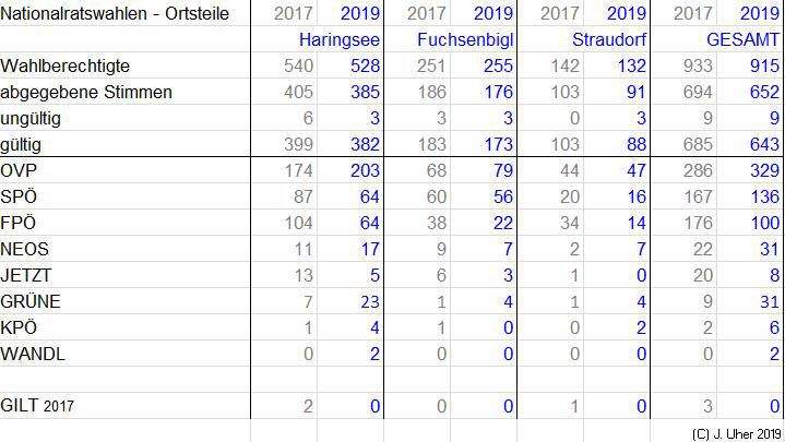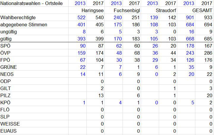 Nationalratswahl 2017 am 15.10.2017 - Ortsteile
