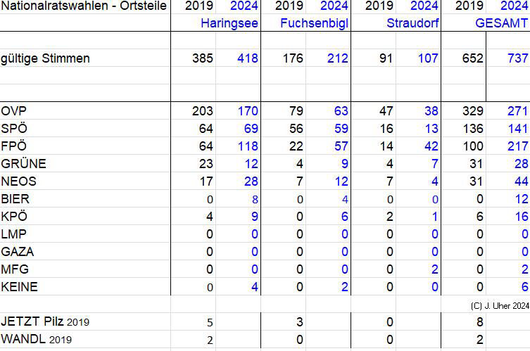 Ergebnisse der Gemeinderatswahl am 26. Jänner 2025