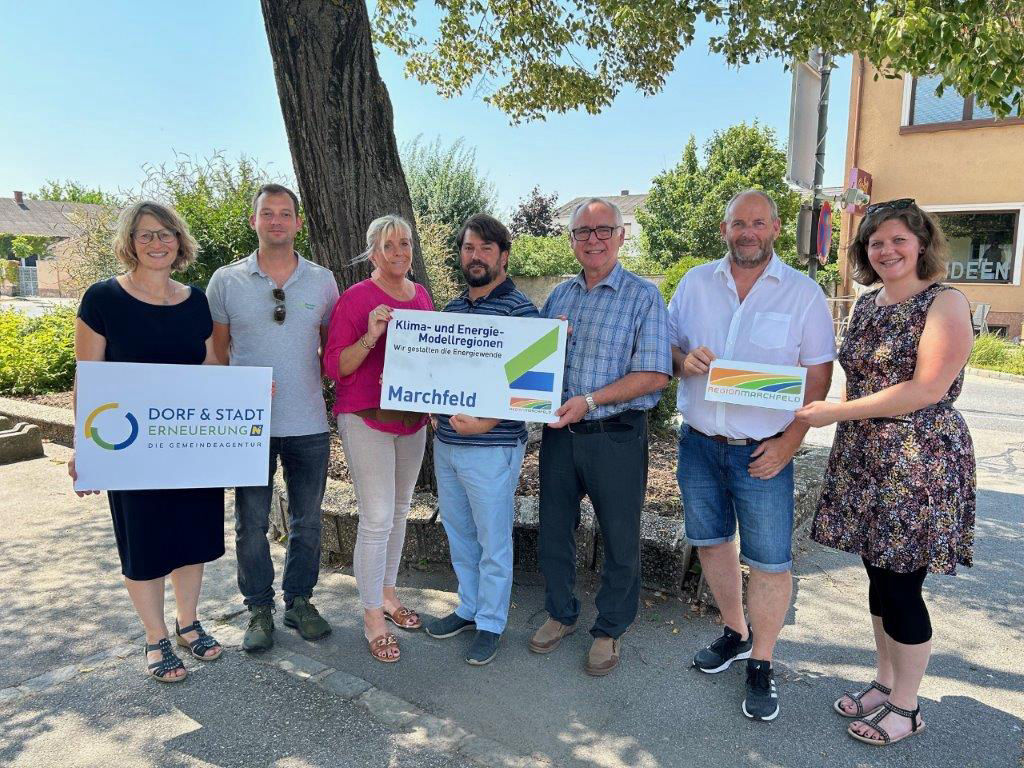 © Region Marchfeld (v.l.n.r.): Dipl.-Ing. Andrea Haberkorn (Dorf- & Stadterneuerung), Dipl.-Ing. Roman Novak (SV Prosenz & Novak), Bgm. Untersiebenbrunn Dagmar Zier, Bgm. Glinzendorf Andreas Iser-Quirgst, BSc., Bgm. Haringsee Roman Sigmund, Vizebgm. Lassee Peter Gahleitner, Dipl.-Ing. Rafaela Obetzhauser (Kleinregionsmanagerin Region Marchfeld)