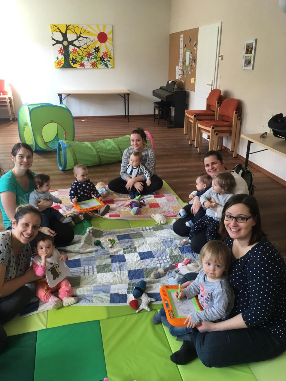 In entspannter Atmosphäre tauschen sich meist Mamis, natürlich sind auch Papis herzlich willkommen, über ihre Erfahrungen Mama zu sein oder zu werden aus, während die Kleinen miteinander spielen oder den schon etwas größeren Kindern begeistert zusehen.