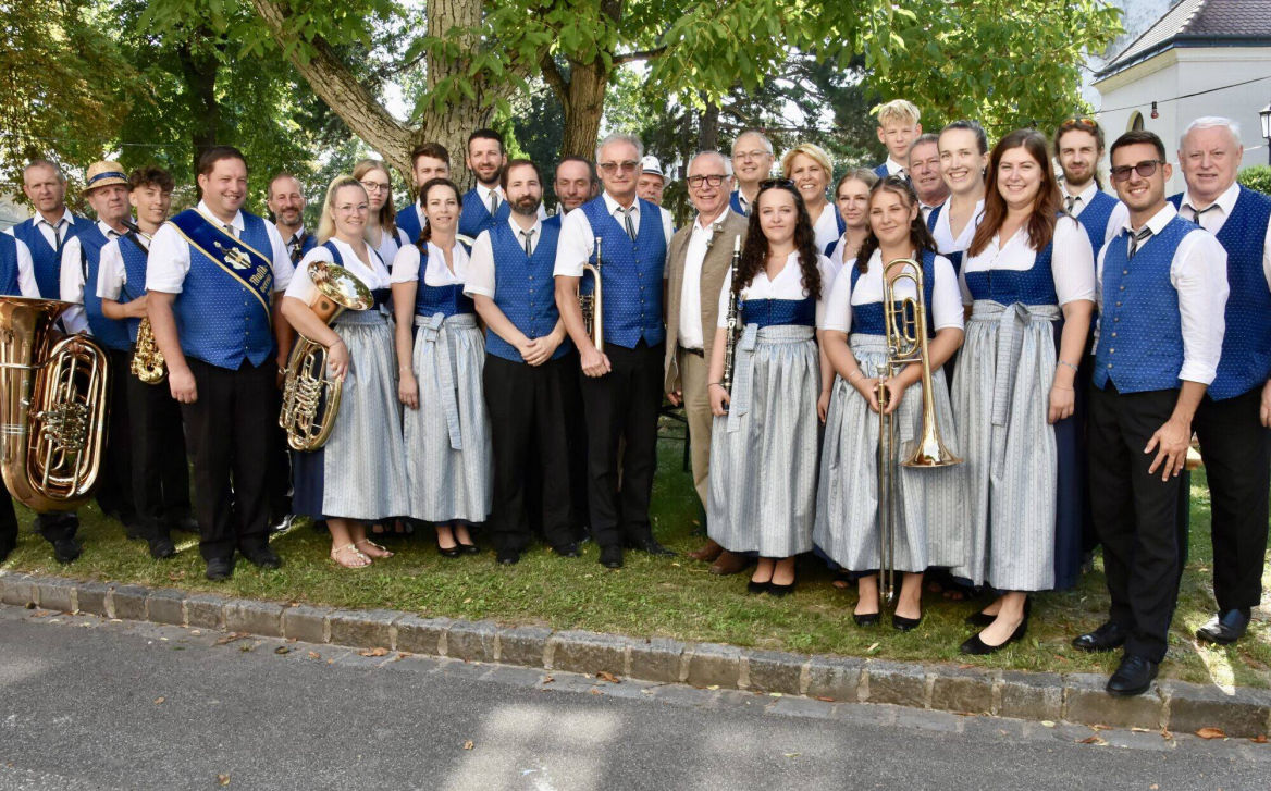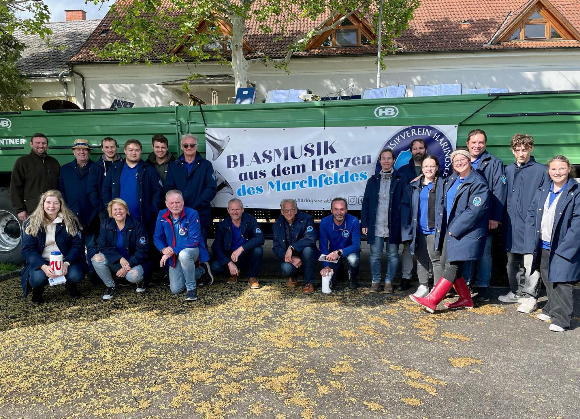 Im Anschluss lud der Musikverein zum Frühschoppen auf das Festgelände vor der Volksschule Haringsee ein. Bei bestem Wetter sorgten die Musikerinnen und Musiker für stimmungsvolle Unterhaltung.
