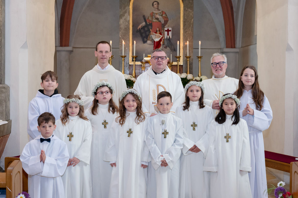 Mit viel Freude und Aufregung, aber gut vorbereitet, feierten sie dann am heurigen Muttertag das Fest der ersten Heiligen Kommunion. Pfarrer Gregor Ziarnowski, Diakon Roland Reisenauer und Pfarrer Robert Rys gestalteten einen wunderbaren, familiären Gottesdienst.