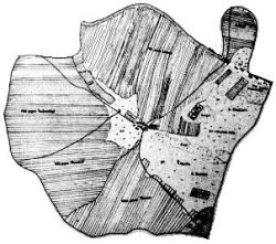 1751| Ortsplan von Haringsee aus dem Jahre 1751, der Sumpf reicht bis zum Dorf.