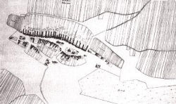 1751| Ortsplan von Haringsee aus dem Jahre 1751, der Sumpf reicht bis zum Dorf.