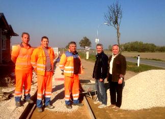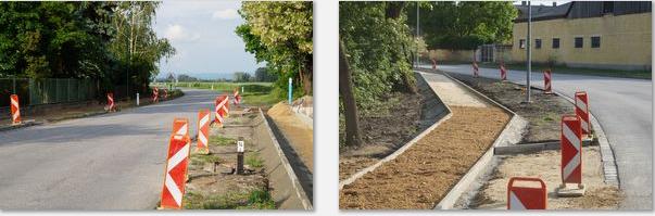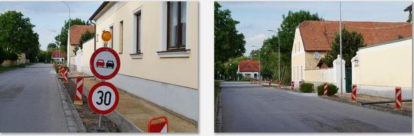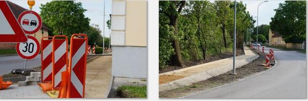 Im Gemeindegebiet von Haringsee werden im Mai 2019 neben der Landesstraße in Richtung Lassee und in Richtung Pframa die Gehsteige erweitert und die dazu gehörenden Grünanlagen errichtet. |