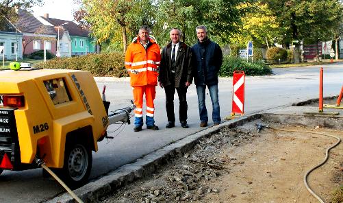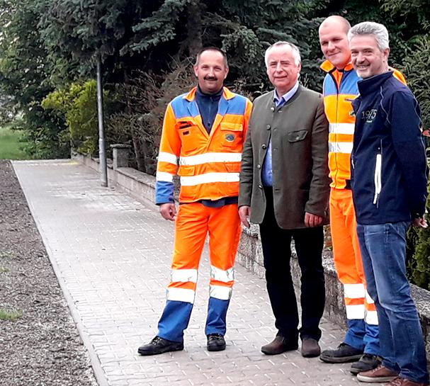 Bürgermeister Roman Sigmund und Straßenmeister Christian Pomassl machen sich ein Bild über die fertigen Arbeiten.