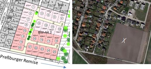 In Haringsee werden 25 neue Bauplätze für Einfamilienhäuser entstehen. Die Vergabe erfolgt nach den Aufschließungsarbeiten in 2 Etappen (Etappe 1 hellrosa, Etappe 2 dunkelrosa). |