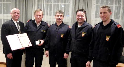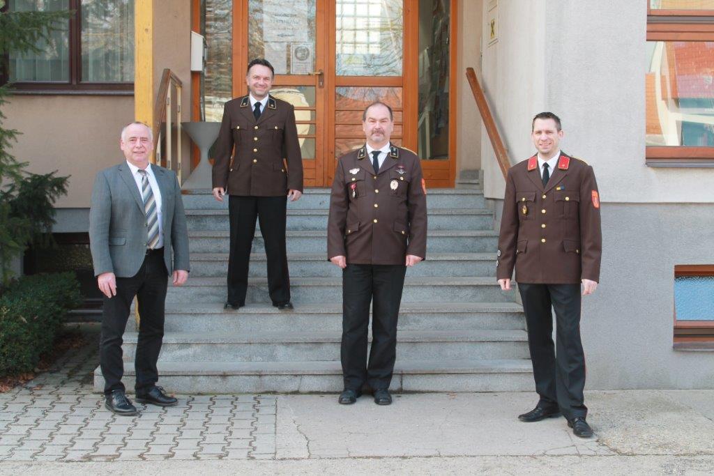 als Kamerad mit Rat und Tat zur Verfügung Foto v.l.n.r: Bgm. Roman Sigmund, V Alexander Wogowitsch, BI Christian Krall, OBI Andreas Hlavac-Jäger |