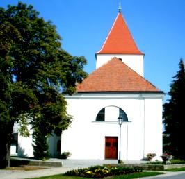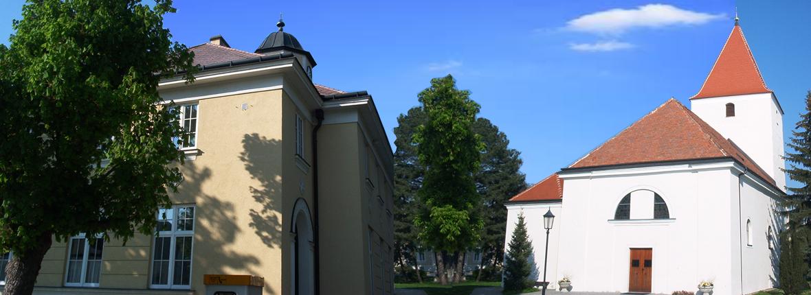 | Aus Mangel einer Urkunde oder eines Gedenksteines ist die Erbauung nicht datierbar. Der mächtige Turm, in dem römische Steine als Baumaterial verwendet wurden, hat einen Meter dicke Mauern und Schießscharten. Der schmale Aufstieg, ein ca. 60 cm breiter Gang, ermöglicht nur das Eindringen eines Mannes nach dem anderen. Um die Kirche befindet sich der Friedhof, der mit einer Mauer, ebenfalls mit Schießscharten, umgeben ist. Außerhalb umringt ein Wassergraben, über den eine Zugbrücke führt, das Areal der Kirche. Somit finden die Bewohner Schutz vor den Türken, Kuruzzen, ungarischen Rebellen und anderen Feinden. | |||