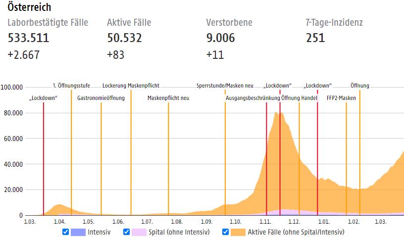 Ein Bild sagt mehr als 1000 Worte (Grafik österreich - Quelle CSSEGISandData / COVID-19) |
