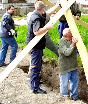 Der Schuppen des Pfarrhofes wird abgetragen. |